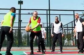 نشر الرئيس التركي، رجب طيب أردوغان، تغريدة مرفقة بفيديو وهو يمارس رياضة كرة السلة مع عدد من الوزراء والمسؤولين في المجمع الرئاسي بأنقرة.