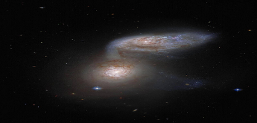 التقط تلسكوب هابل صورًا لاندماج مجرتين سويًا في ظاهرة تتكرر مرة كل ملايين السنين، وأكد العلماء العاملون على "هابل" أن هذه الصورة مثالًا جيدًا على ظاهرة التفاعل الاحتراري التي تحدث بفعل الجاذبية الهائلة للمجرتين.