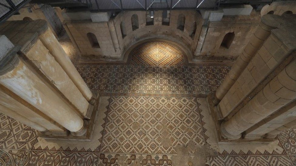 وقالت شبكة بي بي سي البريطانية، إن الفسيفساء الشاسعة التى تشبه السجادة الجميلة تغطي 836 مترًا مربعًا (8998 قدمًا مربعة) في قصر هشام ، وهو قلعة صحراوية أموية إسلامية يعود تاريخها إلى القرن الثامن.