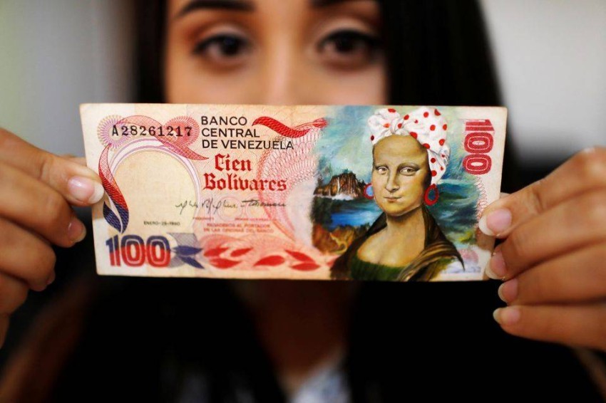 تستخدم الفنانة وطالبة الطب الفنزويلية إليانى دى جريجوريو أوراقاً نقدية قديمة من عملة البوليفار لرسم لوحات فنية متنوعة، فى محاولة لإنعاش قيمة عملتها المحلية بعد الإصلاحات الأخيرة التى قضت على قيمتها الفعلية لتصبح عديمة الفائدة.
