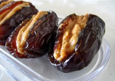 4- تحشى حبات التمر بخلطة زبدة الفول السوداني وتزين بالقليل من الفول السوداني المفروم.