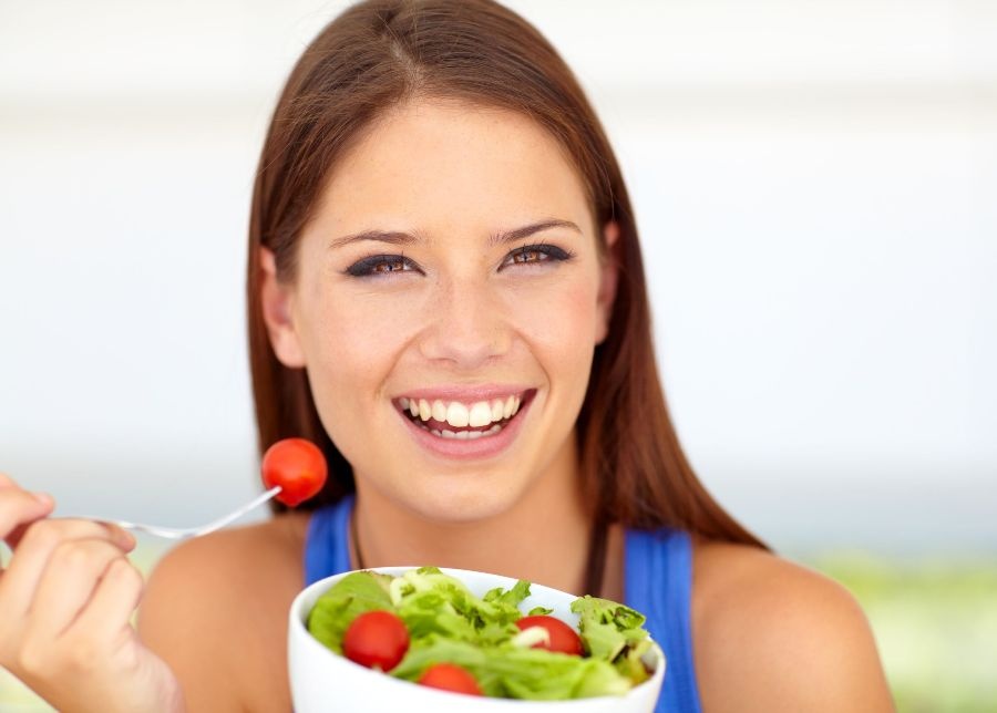 -لأنّ الخضار تحتوي على كمية كبيرة من الماء والألياف الغذائية وأحياناً على البروتينات التي تؤدي إلى شعورك بالشبع، ما يساعدك على خسارة الوزن الزائد ولا سيما في مناطق بطنك ووركيك ومؤخرتك التي تعدّ الأكثر عرضة لتكون السيلوليت.