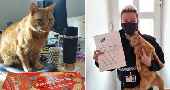 وفي وقت سابق من الشهر الماضى، نشرت شرطة ميدواي على صفحتها على تويتر صورة للقط المشاغب وهو جالس بجوار وعاء من البسكويت، مع التعليق: "يبدو أننا تبنينا قط في مركز شرطة ميدواي".