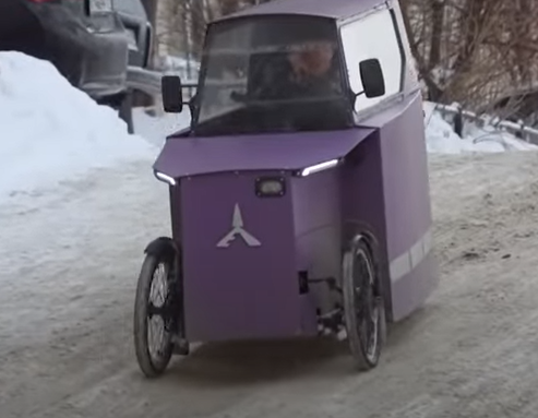 وقال يفغيني لافريتشينكو: "لطالما كنت أعشق الدراجات ولفترة طويلة وعلى الإنترنت رأيت أن هناك مثل هذه العربات التي تملك أيضا محرك دواسة، ونظرا لظروف الطقس، كان من الضروري أيضا تثبيت محرك كهربائي، لأن استخدام الدراجة في الشتاء يكون صعبا للغاية".