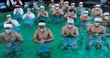 انغمس العشرات من المصلين الذين يرتدون ملابس خاصة مع عصابات للرأس وأقنعة للوجه في المياه الجليدية كجزء من طقوس تقليدية في طوكيو يوم الأحد، حيث صلوا من أجل إنهاء وباء فيروس كورونا. ثلاث نساء، ارتدين أردية بيضاء، وحفنة من الرجال يرتدون ملابس حمام هتفوا وصفقوا وصلوا قبل الاستحمام في المياه المتجمدة المليئة بكتل من الجليد كجزء من طقوس دينية في ضريح Teppou-zu Inari.