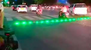وجرى تثبيت إشارات المرور LED على الأرض عند خط الأمان لعبور المشاة وهي مصممة لتوجيه المشاة الذين يتركز انتباههم مع هواتفهم الذكية وغير مبالين بمن حولهم ويطلق عليهم "زومبي الهواتف الذكية".