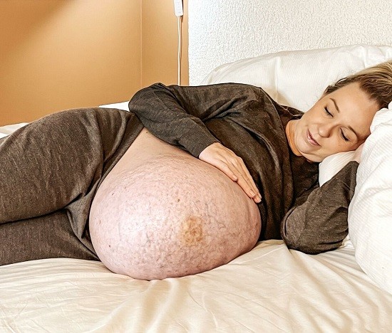 انتشرت صور امرأة حامل بثلاثة توائم على الإنترنت بعد أن وثقت نمو بطنها الضخم بشكل لا يصدق، فحسب ما نشره موقع "ديلى ميل"، تحول لون بطنها إلى اللون الأرجوانى وكانت مغطاة بالكدمات في الأسابيع الأخيرة التي سبقت ولادة أطفالها الثلاثة، وأذهلت ميشيلا ماير، من كوبنهاجن، فى الدنمارك، رواد السوشيال ميديا بعد أن شاركت صورًا لبطنها الضخم على إنستجرام، والتي نمت "بشكل مستقيم" بدلاً من النمو المستدير، والطبيعي لأي امرأة حامل.