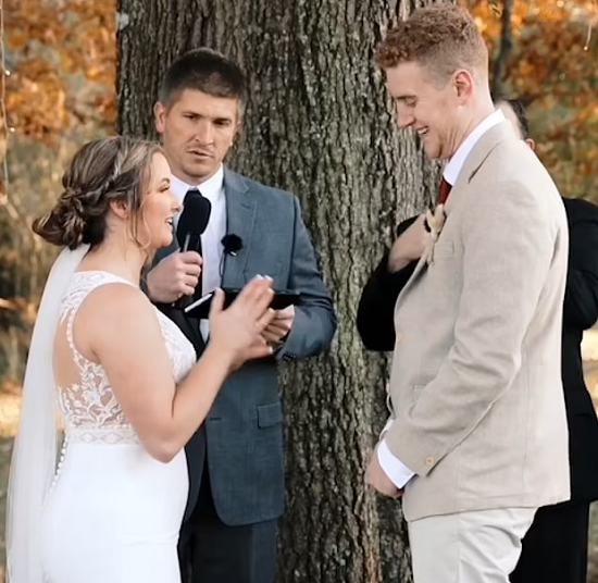 كتبت العروس كيلسى، في تعليق على مقطع الفيديو المسجل من حفل زفافها والذى يبلغ مدته 26 ثانية ونشر على تطبيق" TikTok "، "أنا وزوجي الجميل في يومنا المثالي! ممتنة للغاية لالتقاط هذه اللحظة الخاصة" .