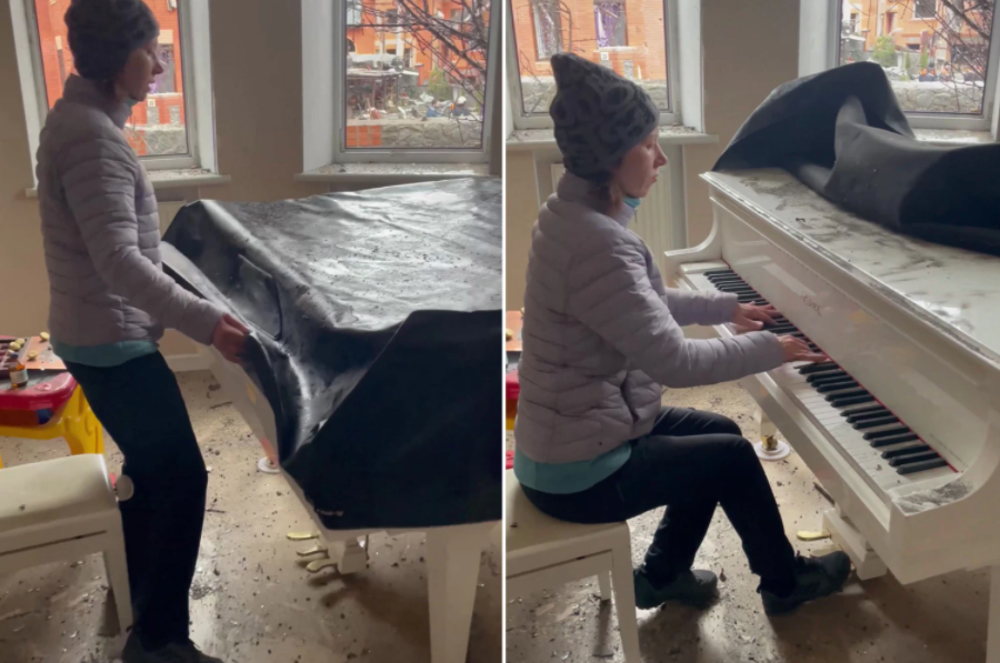 فى مقطع فيديو مؤلم، استغرقت أم أوكرانية عدة دقائق في منزلها الذى تعرض للقصف، وجلست السيدة الأوكرانية لتلعب أغنية واحدة أخيرة على البيانو بعد ساعات من تعرض منزلها لهجمات روسية.