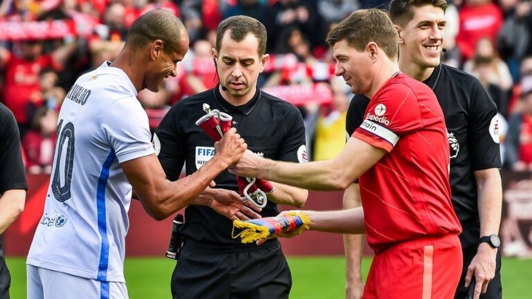 افتتح جيرارد المدير الفني الحالي لفريق أستون فيلا، التسجيل في المباراة بأولى الأهداف لصالح ليفربول من ركلة جزاء سددها ببراعة في شباك أساطير برشلونة.