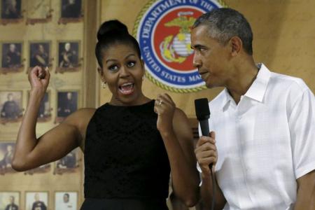 وقام أوباما وزوجته ميشيل بزيارتهما السنوية لقاعة اندرسون للطعام في قاعدة مشاة البحرية الأمريكية لتهنئة الجنود وعائلاتهم بعيد الميلا