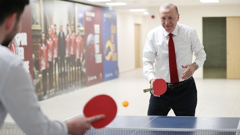 نشرت وسائل إعلام تركية مقطع فيديو ظهر فيه رئيس البلاد رجب طيب أردوغان وهو يلعب كرة الطاولة مع طلاب الجامعات في اسطنبول.