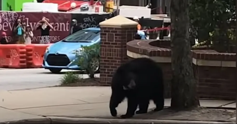 وثق مقطع فيديو ظهور دب ضخم يتجول في وسط مدينة أشفيل بولاية نورث كارولينا الأمريكية، وأوضحت الشرطة إن ظهور الدببة في وسط المدن بات متكررا الفترة الماضية، حيث استجابوا لثلاث حالات مشابهة في غضون أسابيع قليلة.