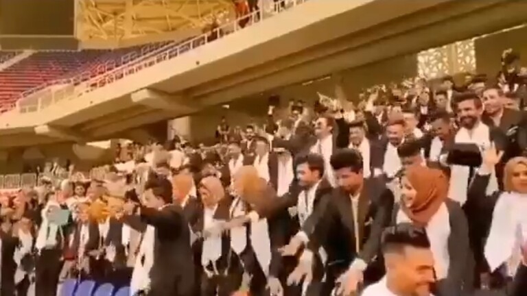 وأثار رقص طلاب كلية التربية البدنية وعلوم الرياضة بجامعة بابل، خلال حفل تخرجهم الذي أقيم في ملعب النجف الدولي، جدلا واسعا.