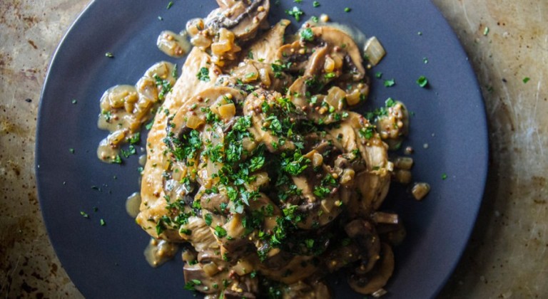 نقدم لك وصفة دجاج بصلصة الخردل والفطر.