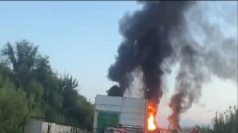 اندلع حريق ضخم في مستودع نفط، اليوم الثلاثاء، في منطقة بوديونوفسكي في دونيتسك شرقي أوكرانيا، بعد أن قصفت القوات الأوكرانية المنطقة.