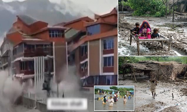 وثقت الكاميرات لحظة صادمة بعدما جرفت مياه الفيضانات فندقا سياحيا فخم فى باكستان، ودمرت 170 ألف منزل في البلاد، ويعد الفندق المكون من 150 غرفة - أكبر وأشهر الفنادق في سوات - وجرفت أساساته بالمياه الهائجة.