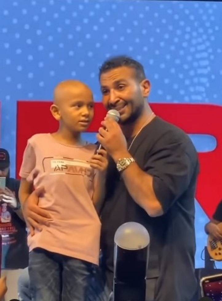 ونشر أحمد سعد مقطع فيديو يجمعه بالطفل، عبر حسابه الشخصي على موقع إنستغرام، وعلق قائلًا: "حبيب قلبي ده طلب مني يغني أغنية مستشفى 57357 معايا".