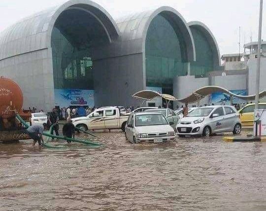 وأظهر المقطع، زيادة ارتفاع منسوب المياه على مدارج مطار الخرطوم بعد اجتياحه بكميات كبيرة من مياه الفيضانات نتيجة غزارة مياه الأمطار.