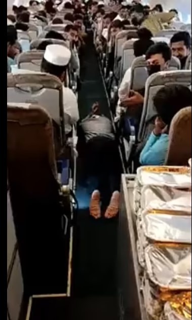 وبدأ الراكب بالصلاة في ممر الطائرة بينما كان من المفترض أن يكون جالسًا، مما أثار فضول الركاب الآخرين، وظهر فى أحد مقاطع الفيديو طاقم الطائرة وهو يعيد الرجل إلى مقعده، ويخرجه من الممر.