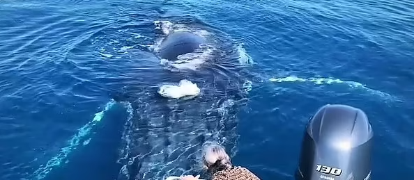 وثقت عدسات الكاميرات مشهد حوت أحدب وهو يقترب من قارب لتحية امرأة، والتى كانت مصدومة بينما ظهر الحوت وهو يسبح مباشرة إلى القارب قبل أن يرسل رذاذًا ضخمًا من أنفه، وتم تصوير اللقطات الاستثنائية على طول مضيق ساندى العظيم على ساحل فريز، فى كوينزلاند الأسترالية، والتقطت صور الحوت وهو يسبح مباشرة إلى القارب ويتدحرج في الماء وينفخ الماء.