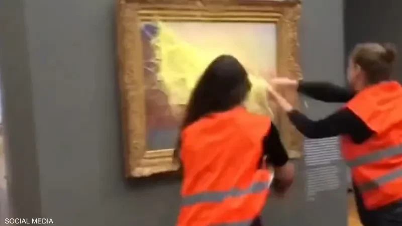 لوحة مونيه أحدث عمل فني في متحف يستهدفه نشطاء المناخ للفت الانتباه إلى ظاهرة الاحتباس الحراري.