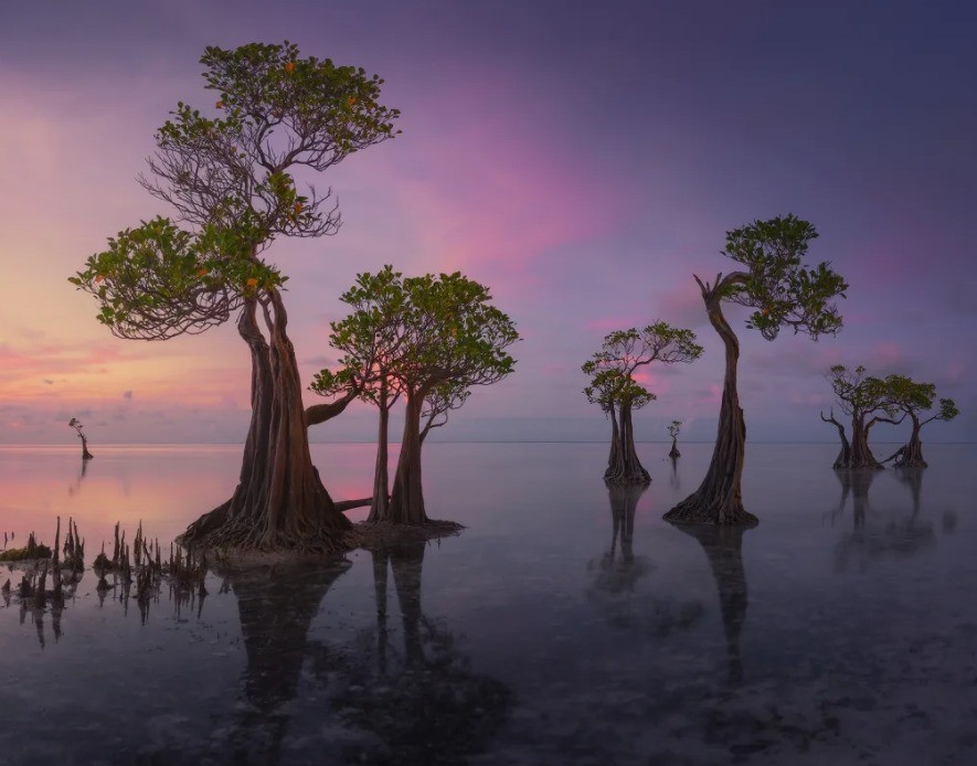 وما يجذب السياح إلى هذه الجنة الاستوائية، هى العشرات من أشجار المانجروف غريبة الشكل التى تصطف على الشاطئ، إذ أن بعضها يبدو وكأنه مجمّد فى وضعية راقصة، ومنح دانيال سلسلة الصور اسم الأشجار الراقصة