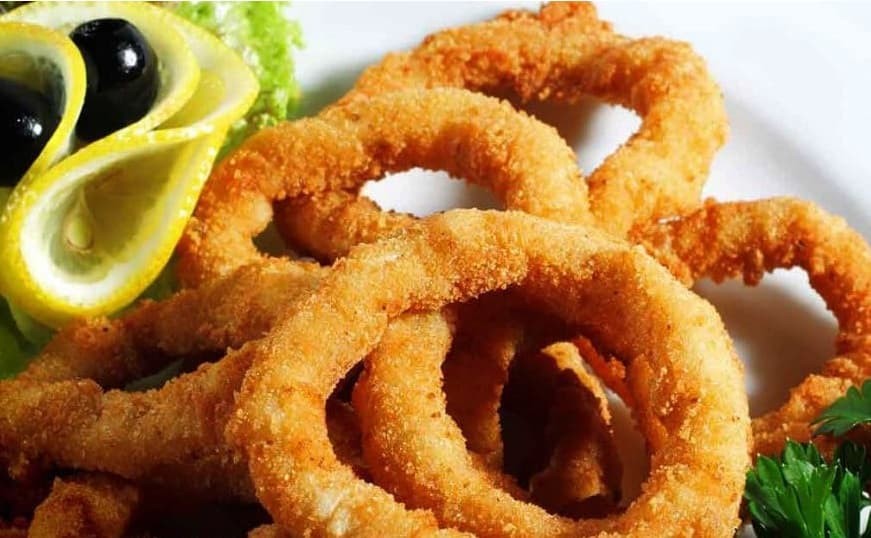 4. في مقلاة على النار، سخّني الزيت النباتي، ثم اقلي الحلقات حتى تتحمر، وضعيها في طبق التقديم وقدّميها ساخنة.