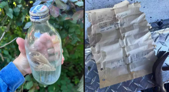 ثم أخذ الزوجان الرسالة فى زجاجة إلى المنزل، وكسرا الزجاج المفتوح، ووجدتا ورقة عليها اسم المرسل ورقمه وعنوانه، حيث كتب في الرسالة، "ملاحظة. من يجد هذا، اتصل بى أو راسلنى، "اقرأ الرسالة فى أسفل الورقة.