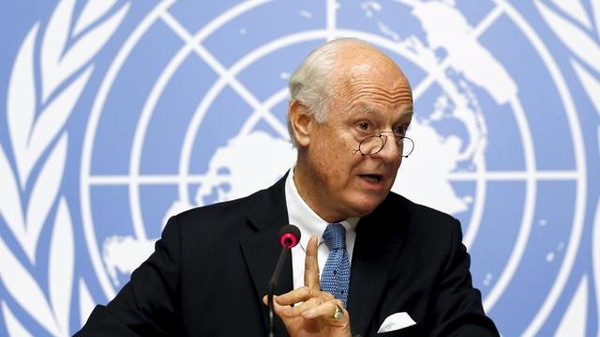 دي مستورا دعا القوى الكبرى لمواصلة الضغط الدبلوماسي على الطرفين - نظام الأسد والمعارضة السورية - للجلوس إلى مائدة المفاوضات، وربط انطلاق المفاوضات بوقف إطلاق النار ووصول قوافل المساعدات الإنسانية للمناطق المحاصرة.