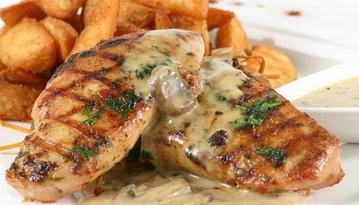 إدهني الشواية بالزيت وسخنيها ثم ضعي شرائح ستيك الفراخ مع الملاحظة حتى تبدأ في النضج ثم قلبي على الوجه الآخر حتى تمام النضج.