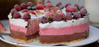 قطعي القالب بحرص إلى قطع مناسبة وقدميه في الحال بالهنا والشفا.