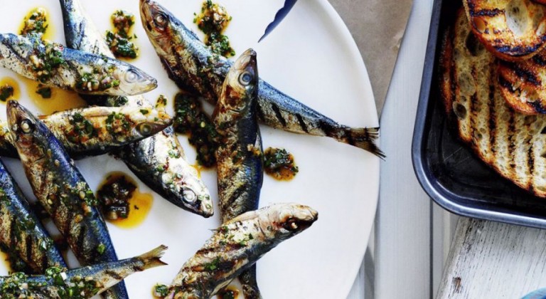 سردين مشوي بصلصة النعناع والليمون
