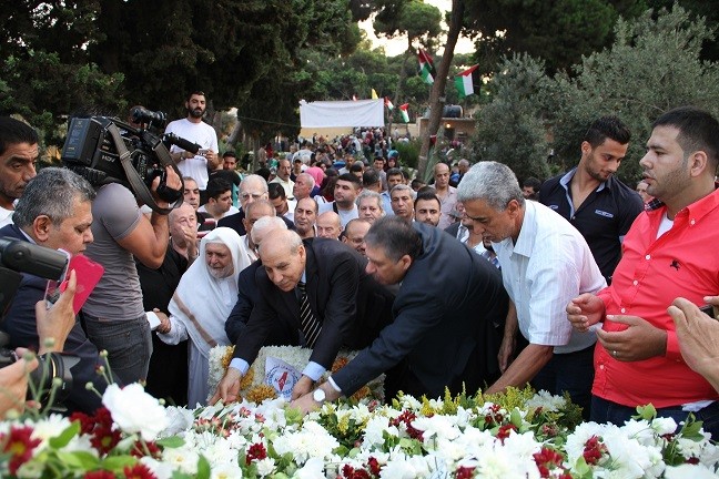 ووضع المشاركون أكاليل من الزهور باسم الرئيس محمود عباس وسفارة دولة فلسطين في لبنان، وباسم منظمة التحرير الفلسطينية وحركة فتح، ورئاسة المجلس الوطني الفلسطيني والجبهة الديمقراطية، ومؤسسة رعاية أسر الشهداء.