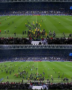 وعلى الفور، ركض لاعبو برشلونة في اتجاه غرفة خلع الملابس، هربا من جماهير الغريم الكتالوني التي اشتبكت مع قوات الأمن، وألقت المقاعد عليها.
