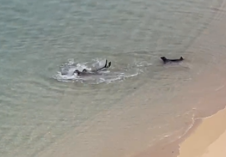فى عالم الحيوان، قد تجد بعد الأمور التى تثير الضحك، من قرب تشابهها من سلوك الانسان، مثل قد يخطف طعام قط آخر، أو كلب يداعب آخر، أو ربما قرد يلاعب ابنه، وفى هذا السياق، رصدت عدسة إحدى الكاميرات، 3 فقمات على شاطئ كايمانا، قبل أن يندلع بينها صراع فى الماء، ويقول موقع kitv، إنه سبب وجيه يجعلك لا تقترب من تلك الحيوانات.