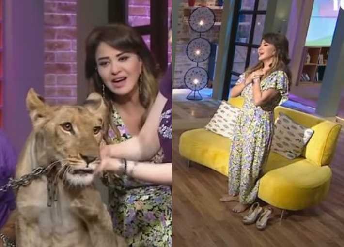 وفي سابقة هى الأولى من نوعها تجرأت مادلين طبر وخلعت حذائها وتوجهت للأسد الكبير والمسمى بـ"روماريو" بعدما رأت أن الأسد الصغير "سيمبا" قد نام وجلست بجانبه أرضا.