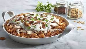 نقدم فتة شاورما الدجاج بعد إضافة الكمية المتبقية من الخبز المقلي على الوجه. الف صحة!