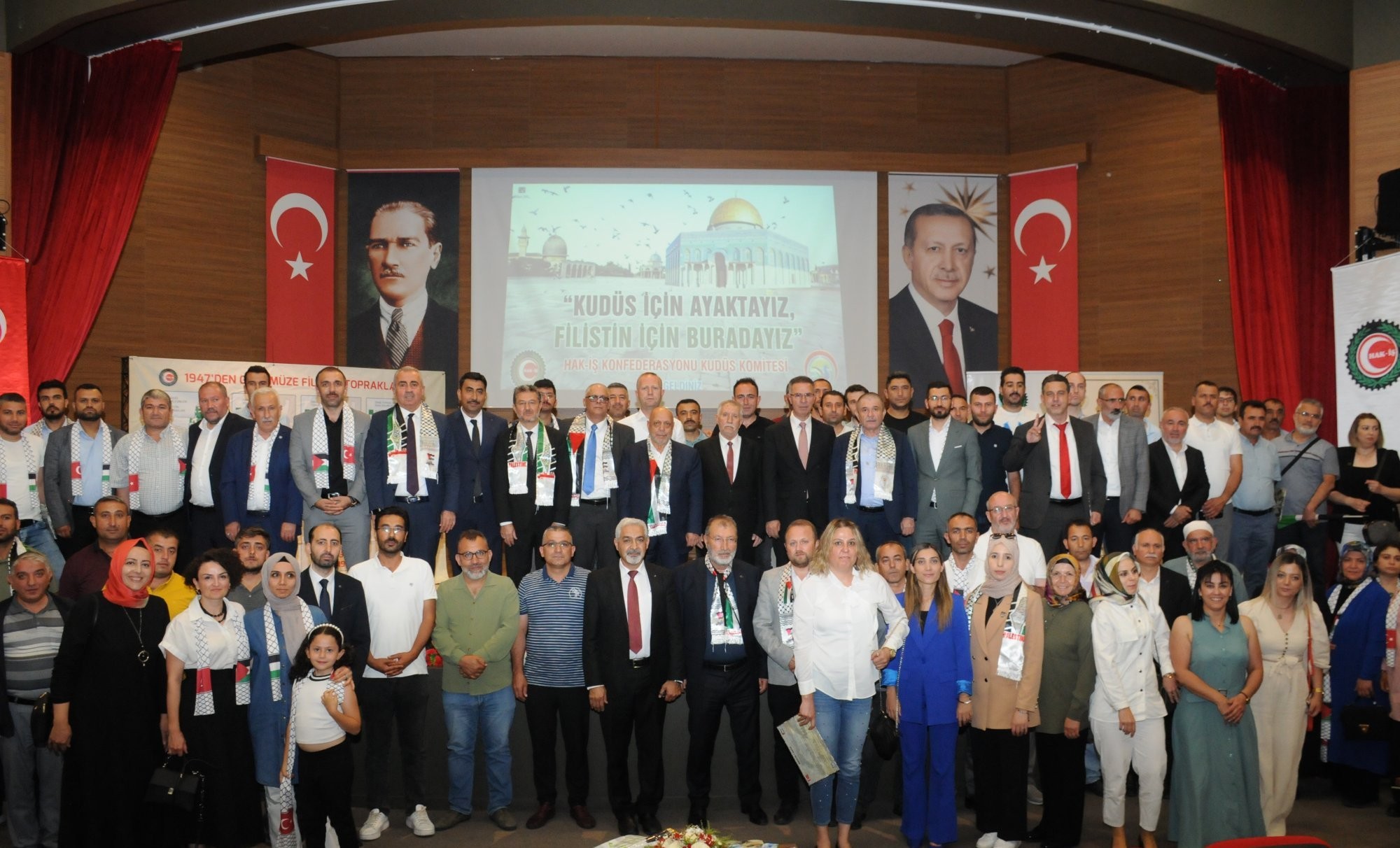 جاء ذلك خلال حفل استقبال نظمه الاتحاد، ورئيس نقابة حق العمل حسين تانريفيردي، ورؤساء النقابات القطاعية والنقابات الفرعية والعامة، لوفد حملة لأجل فلسطين، عضو اللجنة التنفيذية لمنظمة التحرير أحمد التميمي، وسفير دولة فلسطين لدى الجمهورية التركية فائد مصطفى، والمنسق العام لحملة فلسطين مدير عام  دائرة حقوق الإنسان في منظمة التحرير قاسم عواد، ورئيس اللجنة الأكاديمية في الحملة، الأمين العام للحملة الكاديمية الدولية لمناهضة الحتلال والابارتهايد رمزي عودة، ورئيس اللجنة الإعلامية لحملة فلسطين علي سنتريسي.