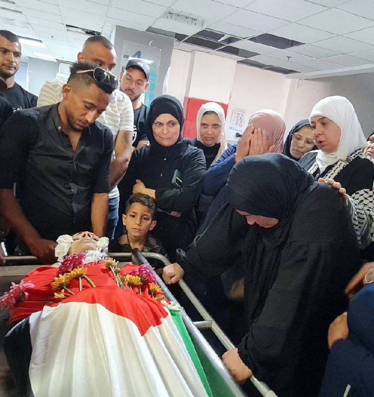 وصدحت حناجر المشيعين بالهتافات الغاضبة والمنددة بجريمة إعدام الشهيد الفتى البايض، وجرائم الاحتلال بحق أبناء شعبنا، حاملين العلم والرايات الفلسطينية.
