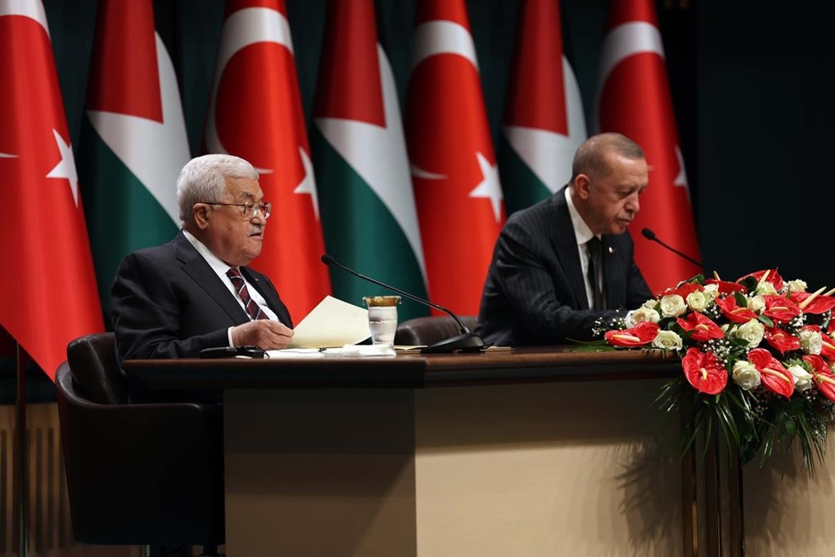أخي فخامة الرئيس أردوغان، إن فلسطين وشعبها يعولون كثيرا على الموقف التركي الذي وقف دوما إلى جانب الحق الفلسطيني، ومواصلة تقديم الدعم للمساعي السياسية الفلسطينية في المحافل الدولية كافة، للحصول على العضوية الكاملة لدولة فلسطين في الأمم المتحدة، واعتماد تعريف النكبة وتجريم إنكارها، ليكون يوم 15/5 من كل عام يوما دوليا لإحيائها، بالإضافة إلى تنسيق الدعم بشأن التوجه الفلسطيني إلى محكمة العدل الدولية، وهذا ما قامت به تركيا هذه الأيام وقدمت مرافعة عظيمة لمحكمة العدل الدولية بهذا الشأن.