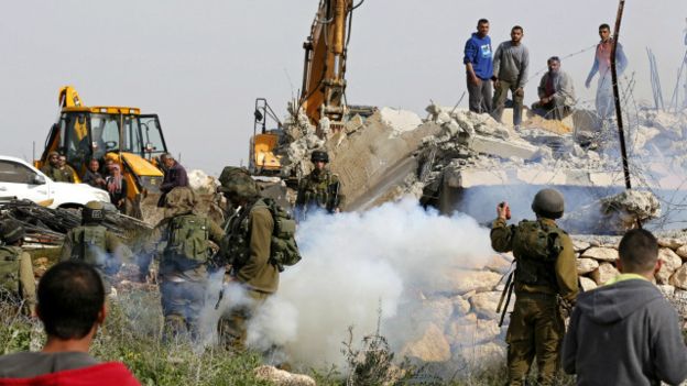 وتقول إن عمليات الهدم تأتي كجزء من مخطط إسرائيلي لهدم منازل الفلسطينيين وأبعاد نحو ألف فلسطيني عن منطقة تبلغ مساحتها نحو20 كيلومترا مربعا في مرتفعات الخليل جنوبي الضفة الغربية والتى أعلنتها تل أبيب منطقة عسكرية عام 1970