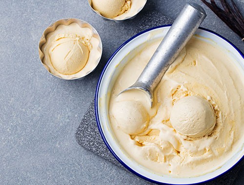 10. قبل التقديم، قم بتزيين الآيس كريم بالمكسرات أو الفواكه حسب الرغبة.