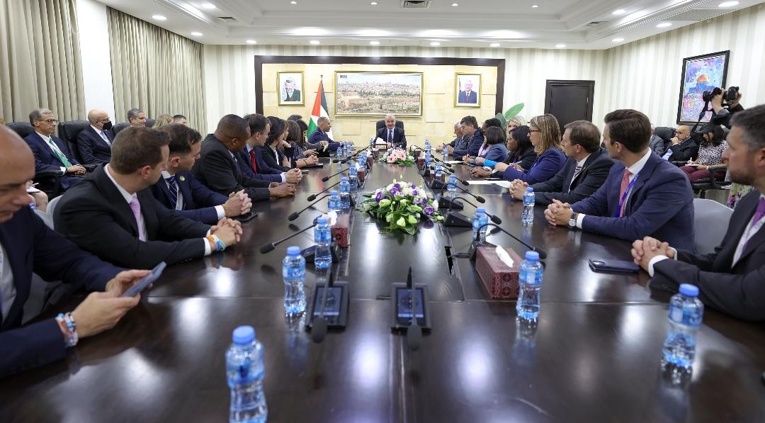التقى رئيس الوزراء محمد اشتية، اليوم الاثنين، في مكتبه برام الله، وفدا من أعضاء الكونغرس الأميركي ضم 22 عضوًا من الحزب الديمقراطي، برئاسة السيناتور حكيم جيفريز، زعيم كتلة الديمقراطيين في مجلس النواب.