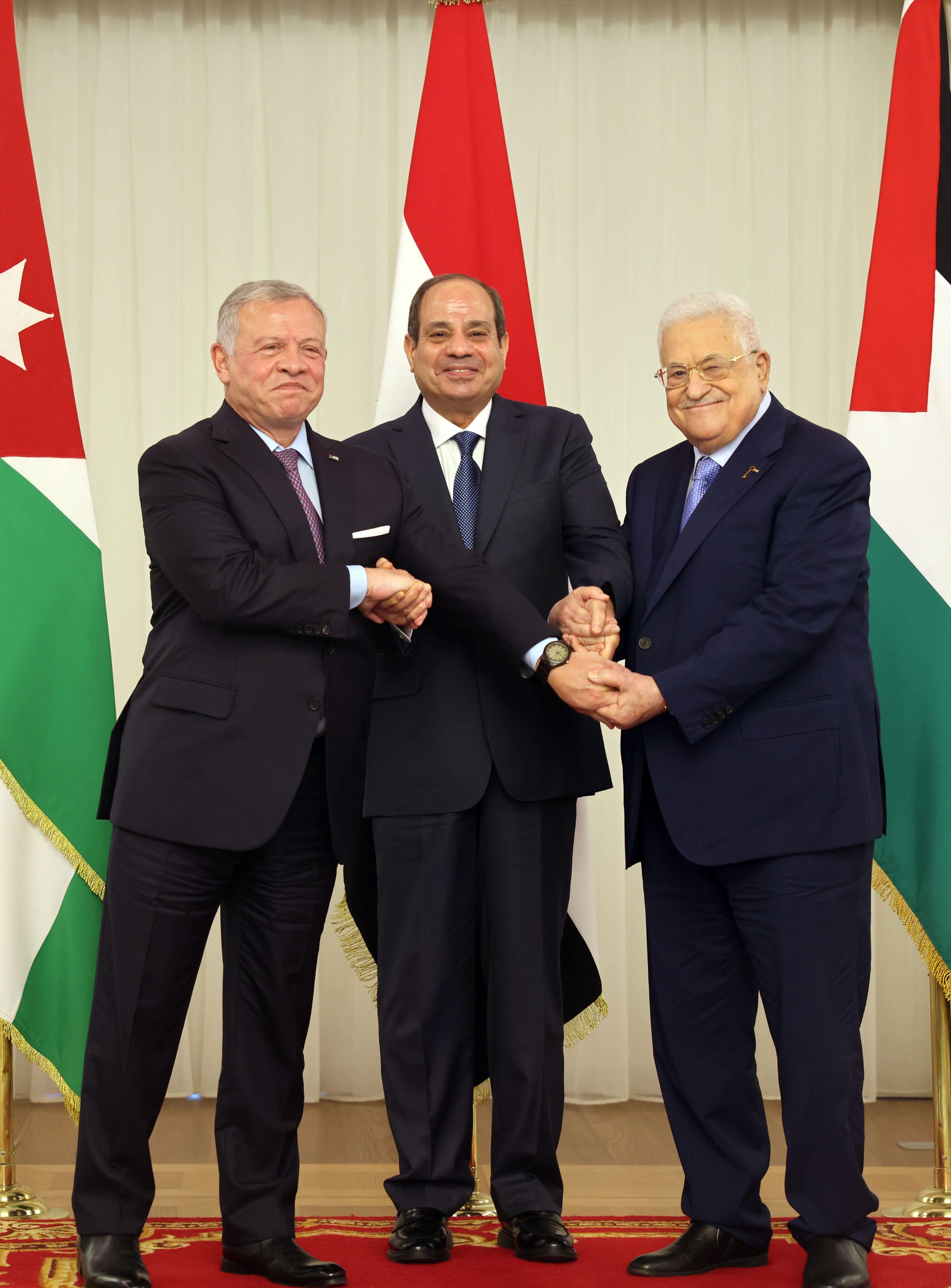 وبحث الرئيس الفلسطيني محمود عباس، ونظيره المصري عبد الفتاح السيسي، والعاهل الأردني الملك عبد الله الثاني، آخر مستجدات القضية الفلسطينية، وسبل مواجهة برنامج وممارسات الحكومة "الإسرائيلية"، ووقف اجراءاتها أحادية الجانب، وجهود كسر الجمود في عملية السلام للتوصل إلى حل عادل وشامل على أساس حل الدولتين على أساس الشرعية الدولية.