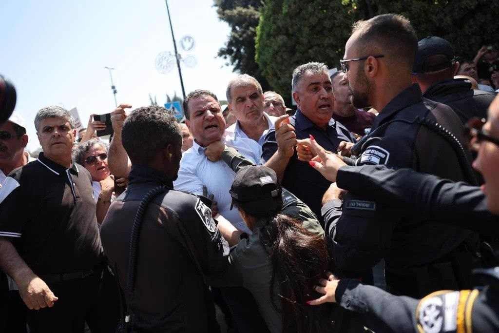 شرطة الاحتلال تعتدي على مظاهرة السلطات المحلية العربية بالقدس وتعتقل رئيس مجلس المزرعة