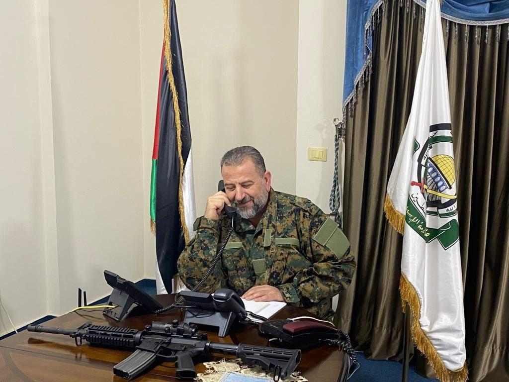 وانتشرت صورة أظهرت العاروري في أول ظهور له بعد تهديد الاحتلال باغتياله، حيث ارتدى الزي العسكري وأمامه سلاحه.