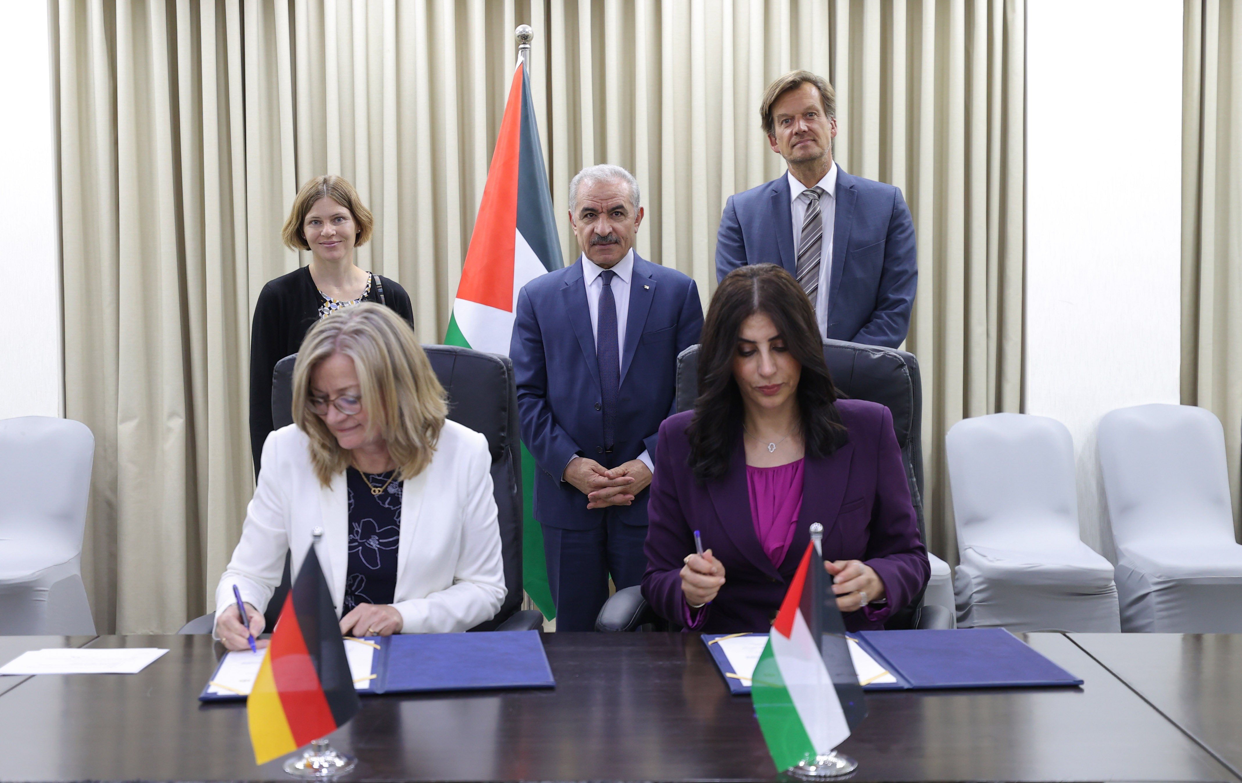 ووقع عن الجانب الفلسطيني، وكيل وزارة الخارجية وشؤون المغتربين أمل جادو، بينما وقع عن الجانب الألماني عضوة المجلس التنفيذي لبنك التنمية الألماني كريستينا لايباخ.