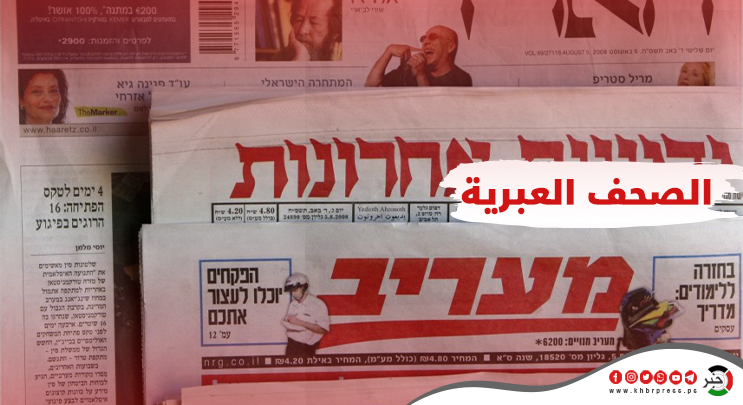 فيما يلي أبرز عناوين الصحف العبرية (يديعوت أحرونوت، معاريف، هآرتس)، الصادرة اليوم الأحد.