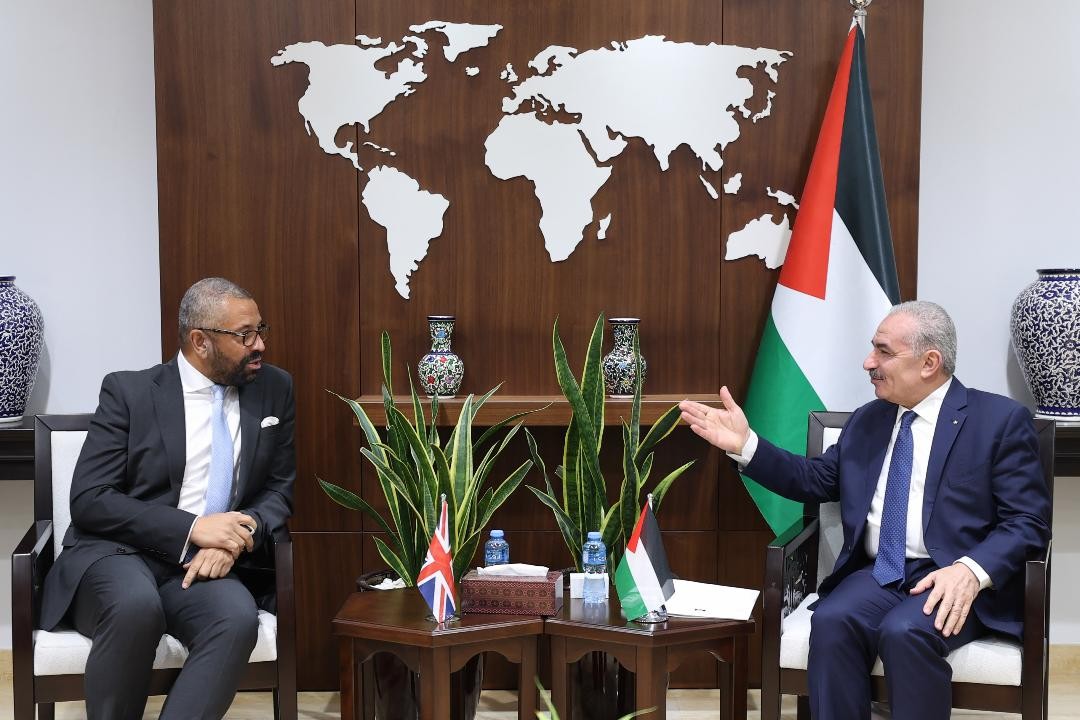 استقبل رئيس الوزراء محمد اشتية، اليوم الثلاثاء، في مكتبه بمدينة رام الله، وزير الخارجية البريطاني جيمس كليفرلي، بحضور القنصل البريطاني العام في القدس ديان كورنر.